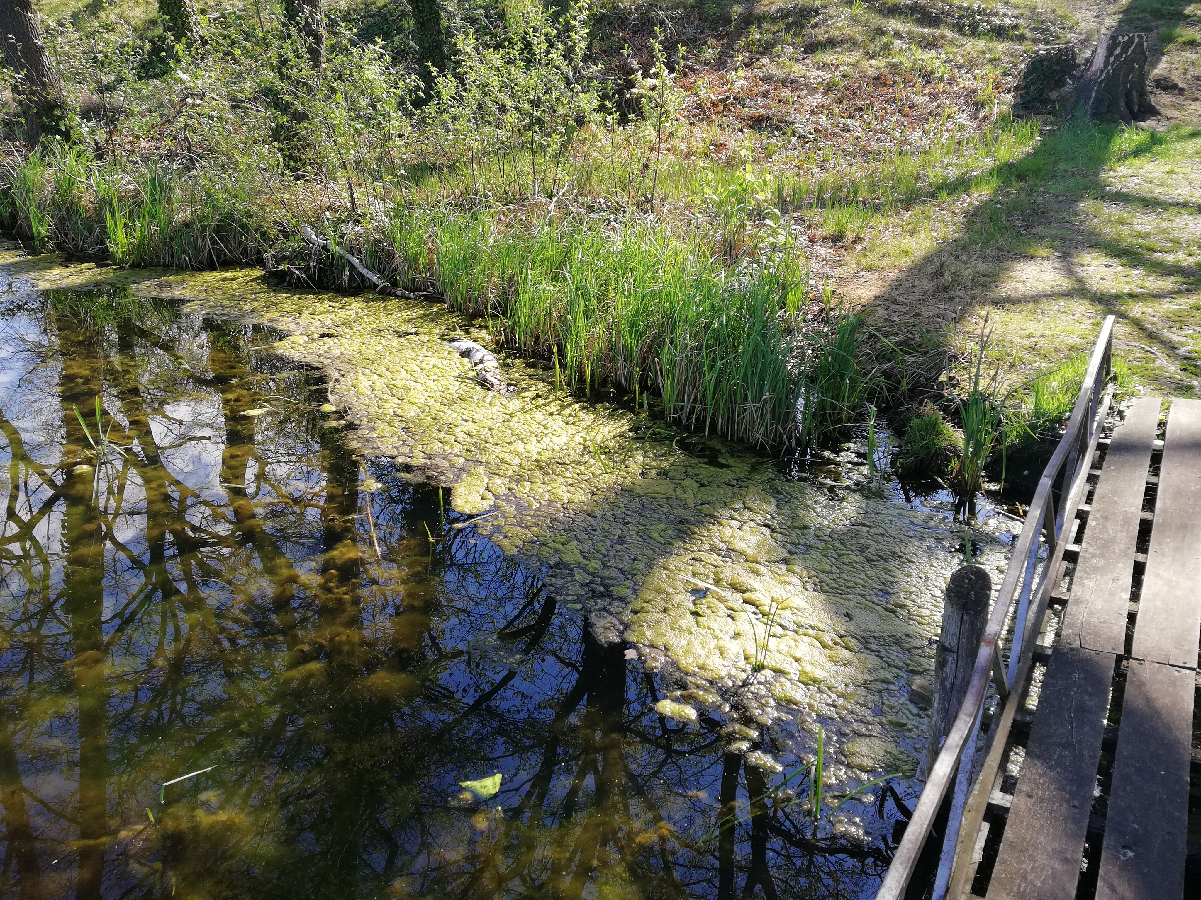 Noch größere Sorgen bereiten den Seen jedoch indirekte Effekte, wie veränderte Licht-, Sauerstoff- und Nährstoffverhältnisse. Bekanntlich verfügt der Bauernsee über sehr nährstoffreiche Sedimente, die in den 1980er Jahren teilweise durch Ausbaggerung entnommen wurden. Die klimabedingte Verstärkung der Nährstofffreisetzung ist eine Folge der so genannten internen Düngung des Bauernsees. Zuvor am Sediment gebundene Nährstoffe wie z.B. Phosphor, werden verstärkt freigesetzt. Für Jedermann sichtbar führt dies zur jährlichen Algen-Massenentwicklung im Bauernsee (vgl. Foto vom April 2020).