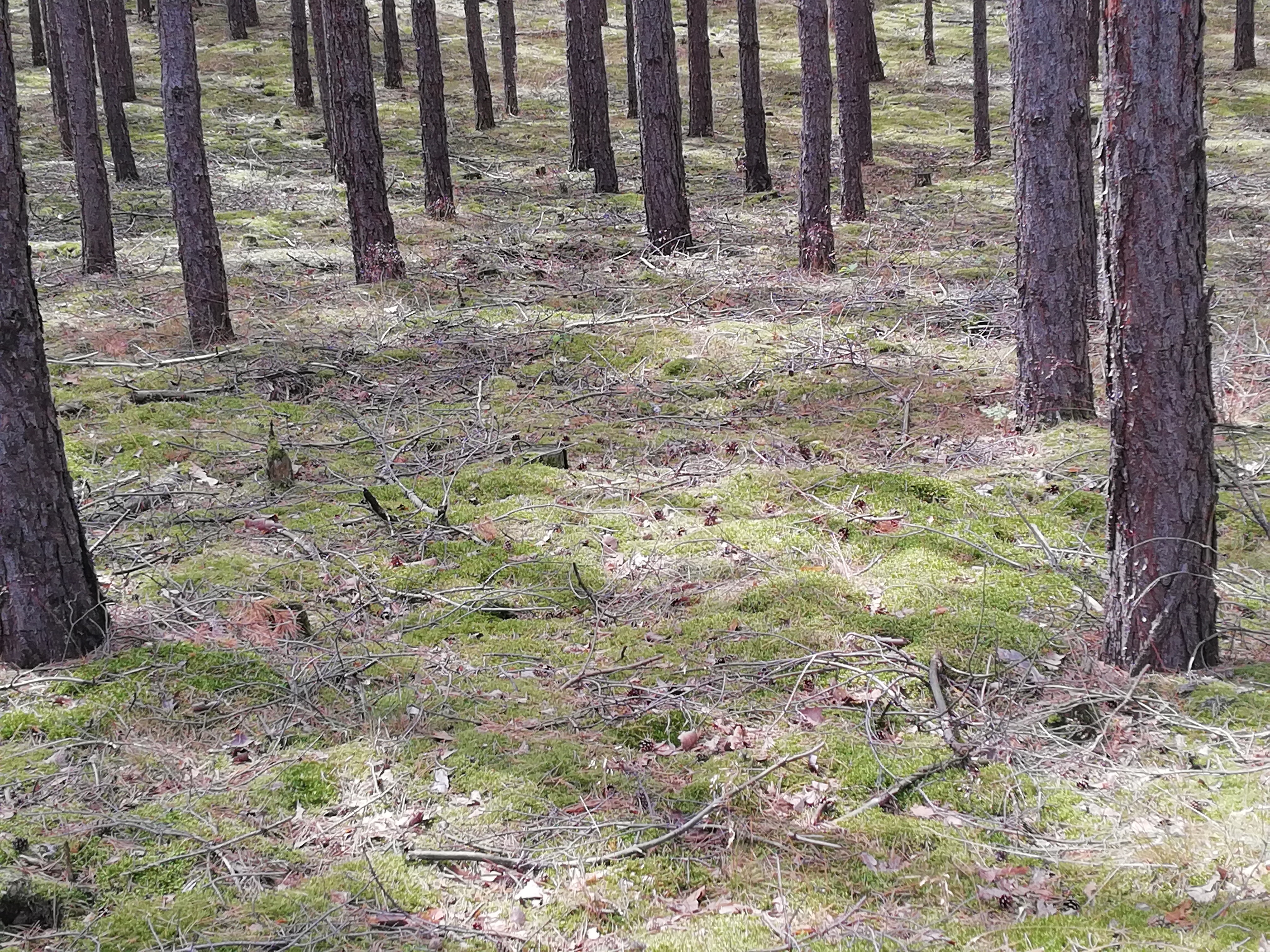 Nach Aufforstung armer Standorte vor über 50 Jahren waren sie womöglich noch den Flechten-Kiefernforsten (Cladonio-Cultopinetum sylvestris) mit Strauchflechten (Cladonia rangiferina, Cl. arbuscula, Cl. mitis) und reichlich Moosen (Hypnum cupressiforme, Pleurozium schreberi, Dicranum scoparium) zuzurechnen, wobei letztere das Unterscheidungsmerkmal zum Flechten-Kiefernwald bilden. Tatsächlich sind die Flechten-Kieferforsten heute verschwunden, weil sie in Hagermoos- oder Drahtschmielen-Kiefernforsten übergegangen sind.