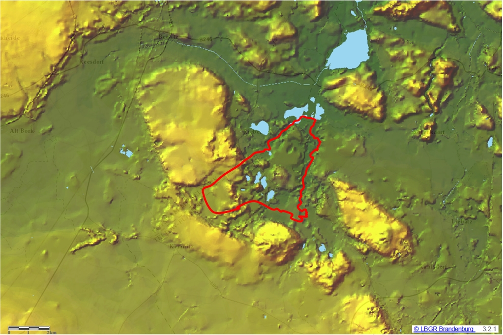 Die sandigen Hochflächen sind heute meist mit Kiefern bewaldet, die vermoorten Niederungen werden überwiegend als Grünland genutzt.