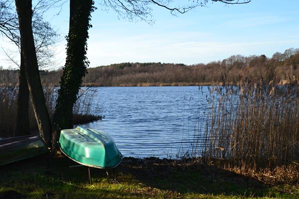 In der Mühlenstraße zieht die Sternwarte auf einem privaten Grundstück die Aufmerksamkeit auf sich. Gemeinsam mit dem Sieben-Seen-Weg und der Seeroute geht es, die Bebauung hinter sich lassend, hinauf auf den Mühlberg. Der Anstieg ist eher durch den Wind zu spüren, der um die Ohren pfeift, als durch beachtliche Höhenmeter. Die Straße mündet in einen Sandweg, der auf der linken Seite gepflastert ist. Ortsvorsteher Holger Jeserigk vermutet, die Pflasterstraße könnte einmal als Zufahrt zu einem Forsthaus angelegt worden sein. Die Steine werden langsam vom Grün überwuchert. Leider liegt auch etwas Müll am Wegesrand.