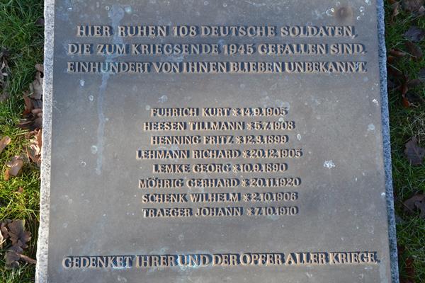 Hier ruhen 108 deutsche Soldaten, die in den Kämpfen um den Ausbruch aus dem Halbe-Kessel gefallen sind.