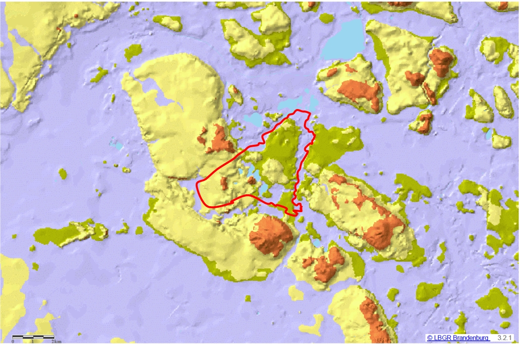 Die sandigen Hochflächen sind heute meist mit Kiefern bewaldet, die vermoorten Niederungen werden überwiegend als Grünland genutzt.